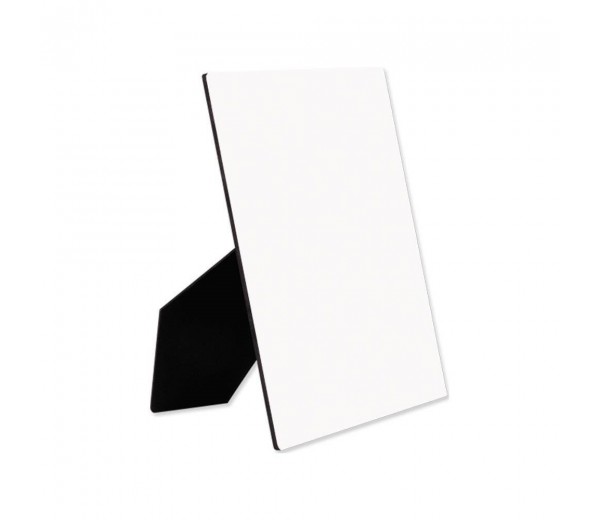 Ce cadre photo de sublimation rectangulaire est fabriqué en panneau dur blanc brillant. Les côtés et le dos sont noirs. Le cadre photo a un support solide noir qui se déplie pour que vous puissiez le poser horizontalement ou verticalement.